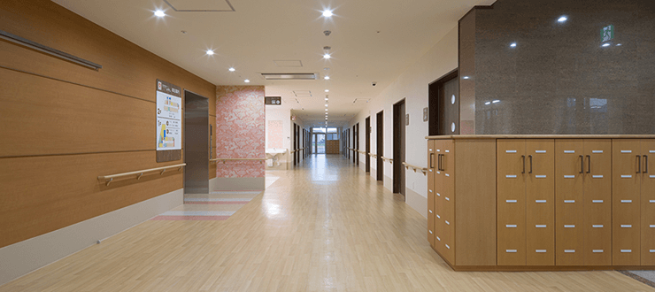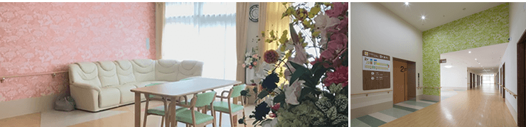 窓が多く陽の光が降り注ぐ明るい室内は、間口・通路ともに広くなっており、移動しやすく、開放感あふれる空間です。 また、高齢者の方が安心して過ごせるよう、淡いカラーでコーディネートしています。色彩の心理効果も取り入れ、鎮静作用、緊張緩和、癒しなどのリラックス効果のある居心地の良い、 安心できる環境で過ごして頂きたいと考えています。 在宅に近い施設づくりを目指し、利用者とスタッフがアットホームな雰囲気で関われるようなサービスをご提供することで、望ましい介護の在り方を追求していく方針です。 施設は医院と併設ですので、入居者様の健康管理などは、本人様を始め ご家族様にとっても安心して日々の生活を過ごしていただくことが出来ます。