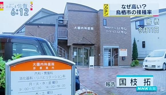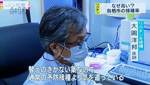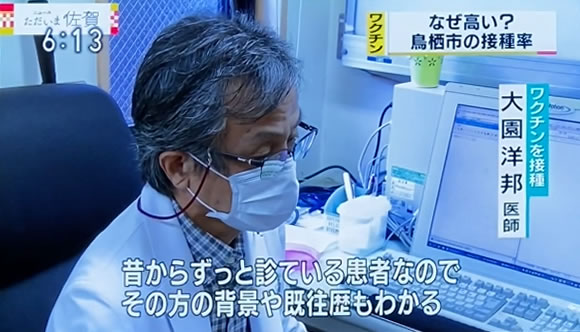 当院の大園洋邦 院長が、新型コロナウイルスのワクチン接種に関してNHK ニュースただいま佐賀の取材を受けました。 またこの取材内容は、2021年6月14日のNHKの午後6時10分からの「ニュースただいま佐賀」と午後8時45分からの「ニュースおかえり佐賀845」で放送されました。